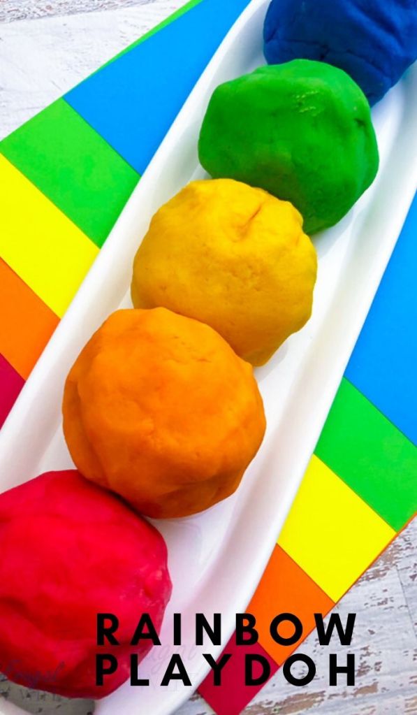 Most kids love play dough, kinetic sand, and the like. For an on-theme and hands-on activity, try this rainbow play dough recipe from The Frugal Navy Wife or this festive slime from Little Bins for Little Hands.