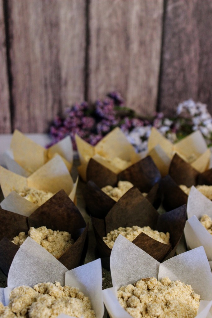 5. Spoon a couple tablespoons of the streusel on top of each muffin.